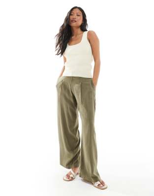 Miss Selfridge Petite - Pantalon large ajusté en lin mélangé - Kaki
