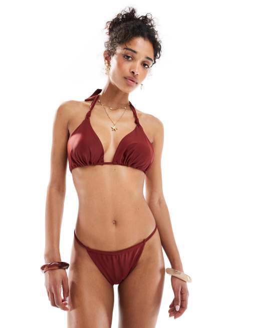 Miss Selfridge - Bikini triangle noué à assortir - Bordeaux