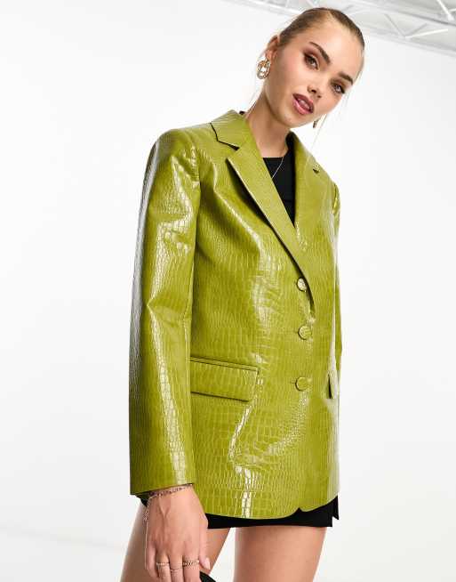 Miss Selfridge - Blazer oversize imitation cuir effet croco - Olive