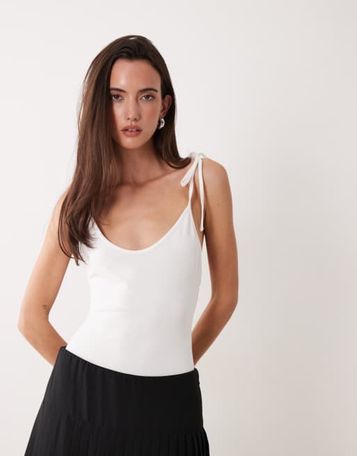Miss Selfridge - Body à bretelles nouées et dos échancré - Blanc