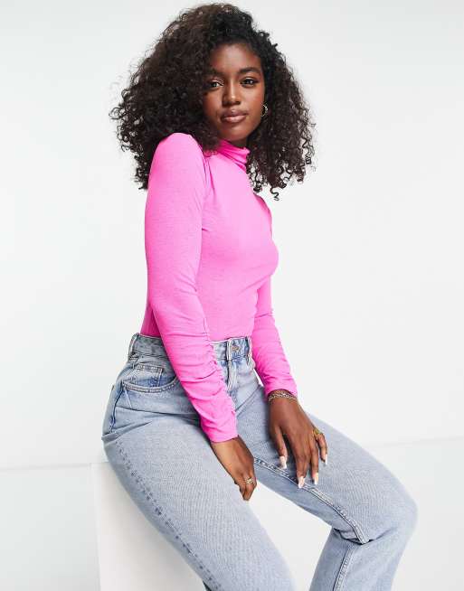 Miss Selfridge - Body col roulé en tulle texturé - Rose