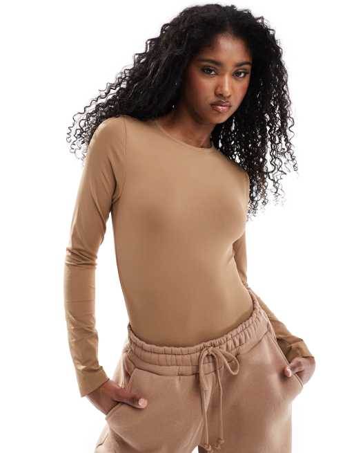Miss Selfridge - Body d'ensemble en molleton doux avec col ras de cou - Moka