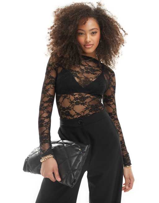 Miss Selfridge - Body en dentelle à encolure bateau - Noir