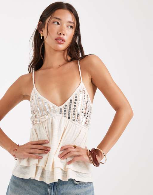Miss Selfridge - Caraco babydoll à sequins - Crème