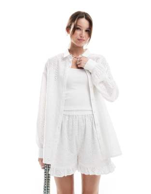Miss Selfridge - Chemise d'ensemble en broderie anglaise - Blanc