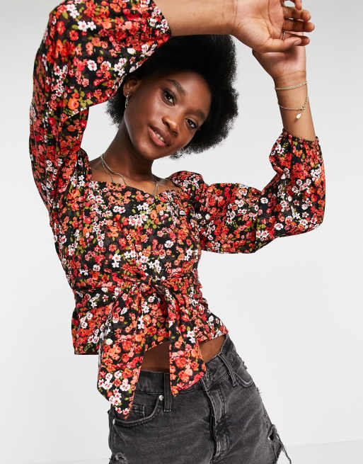 Miss Selfridge - Chemisier noué sur le devant à petites fleurs - Rouge