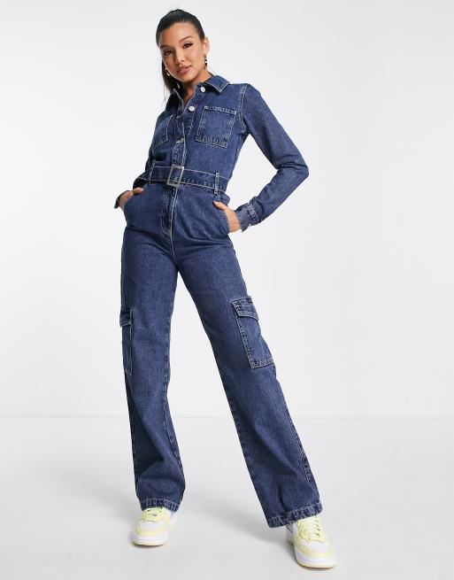 Miss Selfridge - Combinaison cargo en jean - Bleu délavé foncé