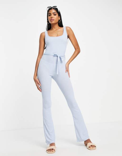 Miss Selfridge - Combinaison côtelée à encolure dégagée et lien à la taille