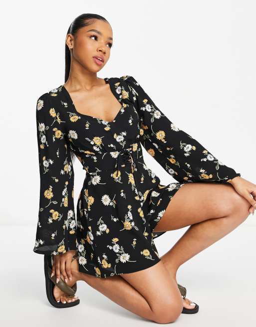 Miss Selfridge - Combishort à manches kimono - Imprimé tournesols