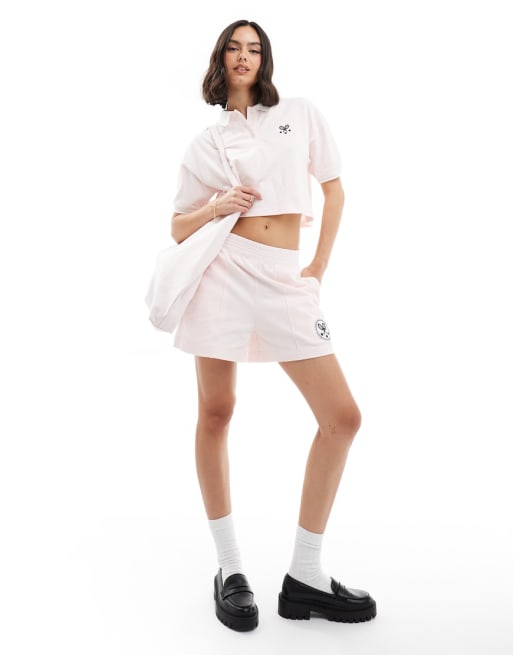 Miss Selfridge - Ensemble polo de tennis raccourci à manches courtes et short - Rose