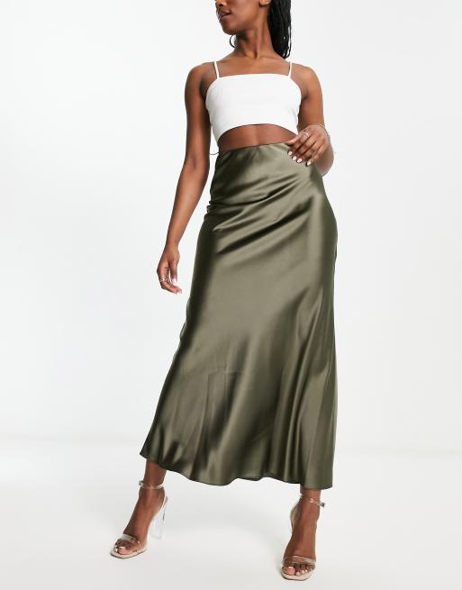 Miss Selfridge - Jupe mi-longue en satin coupée en biais - Kaki