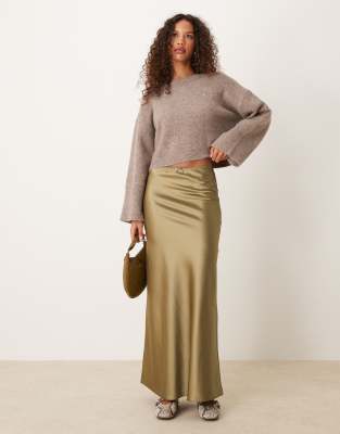 Miss Selfridge - Jupe mi-longue en satin - Kaki