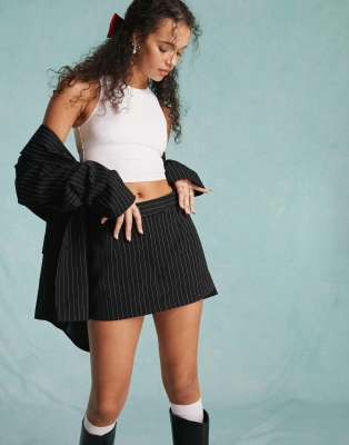 Miss Selfridge - Jupe-short courte ajustée d'ensemble à fines rayures - Noir