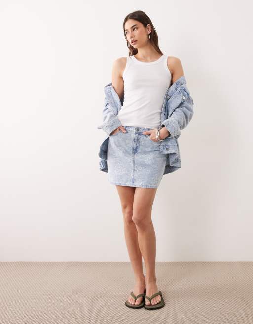 Miss Selfridge - Mini-jupe en jean d'ensemble à fleurs
