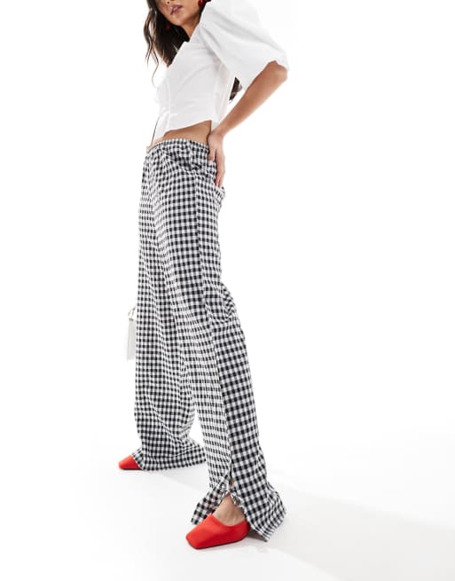 Miss Selfridge - Pantalon ample à carreaux vichy et détail noué sur le côté