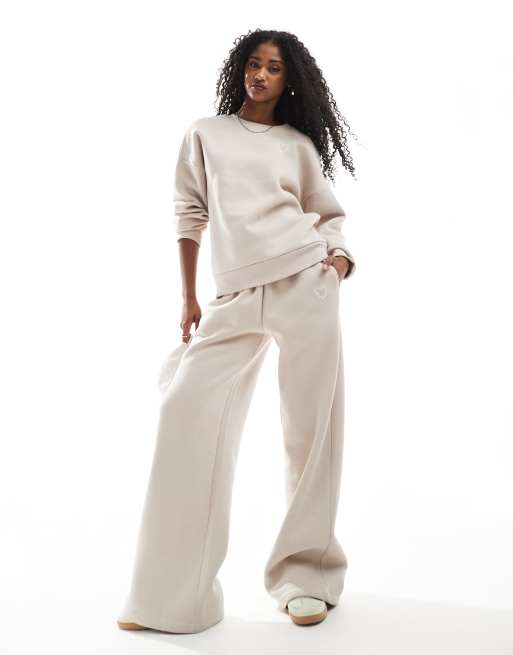 Miss Selfridge - Pantalon de jogging d'ensemble à imprimé logo en relief et chevilles resserrées - Taupe