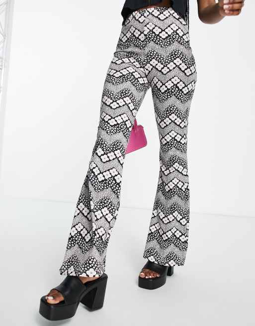 Miss Selfridge - Pantalon évasé fleuri à motif zigzag - Noir et blanc