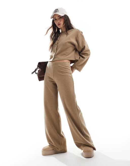 Miss Selfridge - Pantalon large d'ensemble en maille côtelée douce - Beige