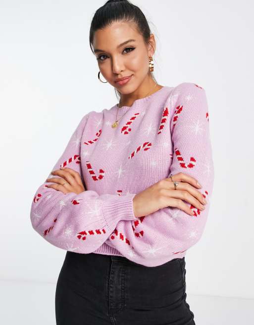 Miss Selfridge - Pull à motif Noël sucre d'orge et étoiles - Rose