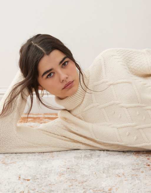 Miss Selfridge - Pull torsadé à col roulé et franges