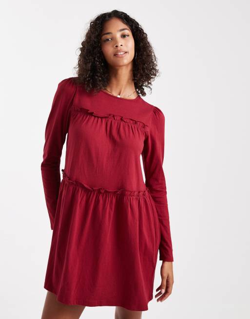 Miss Selfridge - Robe babydoll courte à volants - Rouge cerise