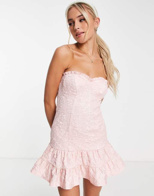 Miss Selfridge - Robe bustier courte de bal de promo en jacquard - Rose