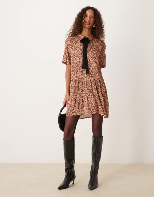 Miss Selfridge - Robe courte à volants et à imprimé léopard