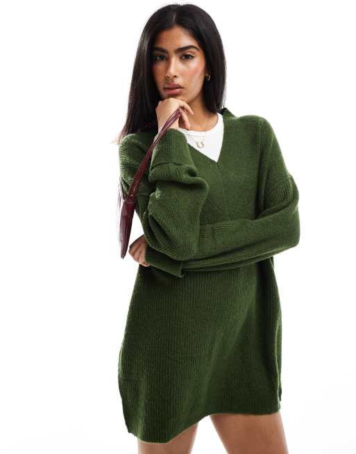 Miss Selfridge - Robe courte ample à col V - Kaki
