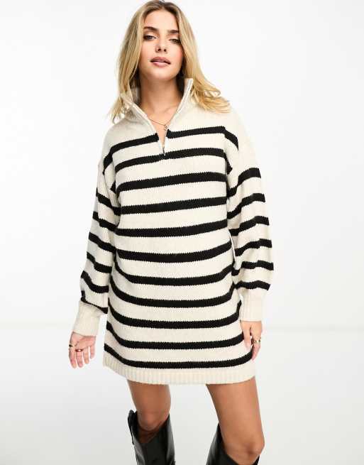 Miss Selfridge - Robe courte en maille rayée avec col cheminée zippé