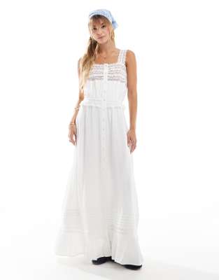 Miss Selfridge - Robe longue à bretelles en tissu froissé et dentelle - Crème