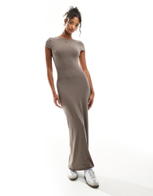 Miss Selfridge - Robe longue dos nu à mancherons - Neutre