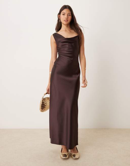 Miss Selfridge - Robe nuisette mi-longue en satin à col bénitier