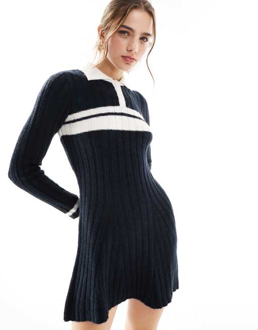 Miss Selfridge - Robe polo à rayures - Bleu marine