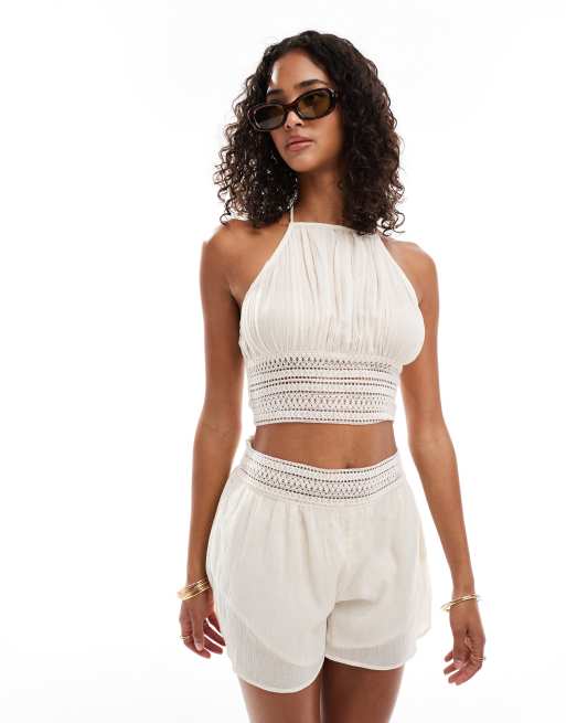 Miss Selfridge - Short d'ensemble de plage à perles - Naturel