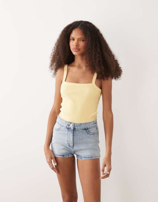 Miss Selfridge - Short en jean moulant - Bleu délavé