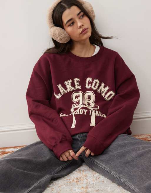Miss Selfridge - Sweat oversize à inscription Lake Como - Bordeaux
