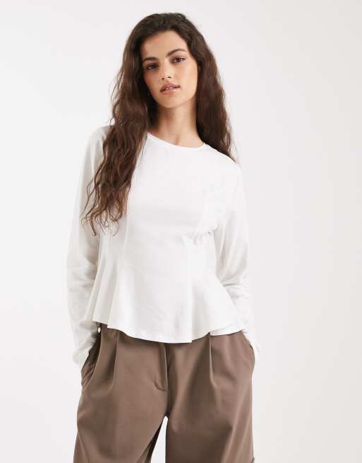 Miss Selfridge - T-shirt à basques et manches longues - Blanc