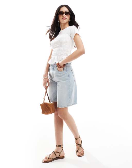 Miss Selfridge - T-shirt à empiècement froncé - Blanc