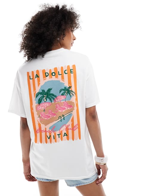 Miss Selfridge - T-shirt à imprimé estival Dolce Vita - Blanc