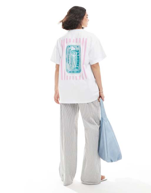 Miss Selfridge - T-shirt oversize à rayures roses et imprimé graphique au dos