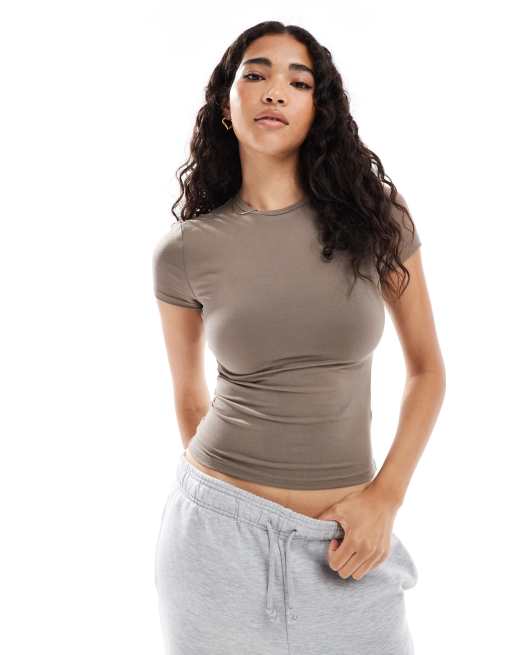Miss Selfridge - T-shirt sculpté à manches courtes - Moka