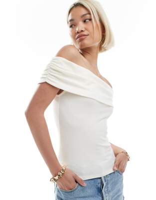 Miss Selfridge - Top à encolure Bardot rabattue - Crème
