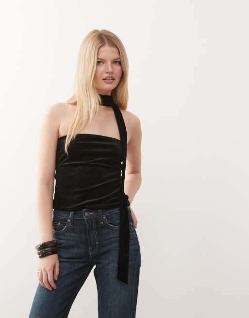 Miss Selfridge - Top bandeau en velours avec détail style foulard