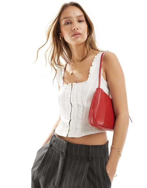Miss Selfridge - Top corset à volants et œillets - Crème