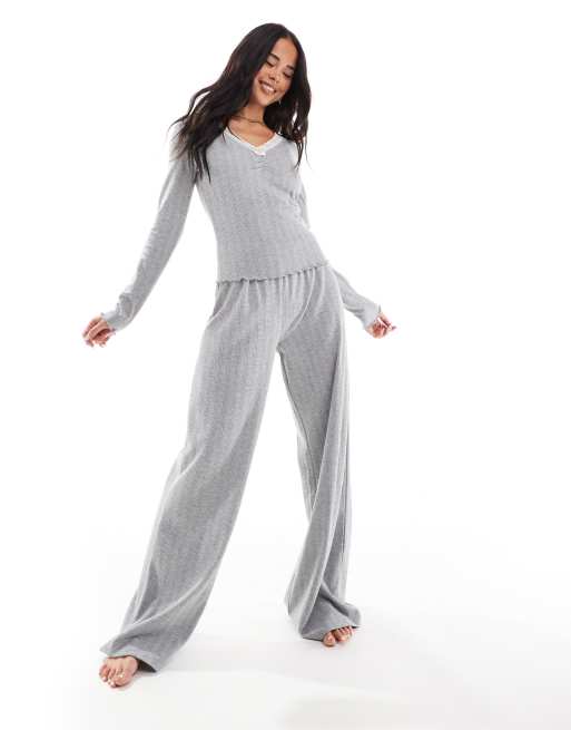 Miss Selfridge - Top d'ensemble en maille pointelle à manches longues et bordure en dentelle