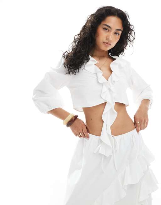 Miss Selfridge - Top volantée avec liens noués sur le devant - Blanc