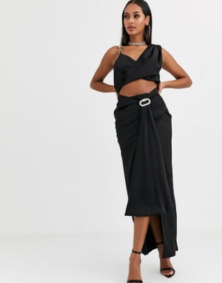Missguided - Peace and Love - Ensemble drapé en satin - Noir