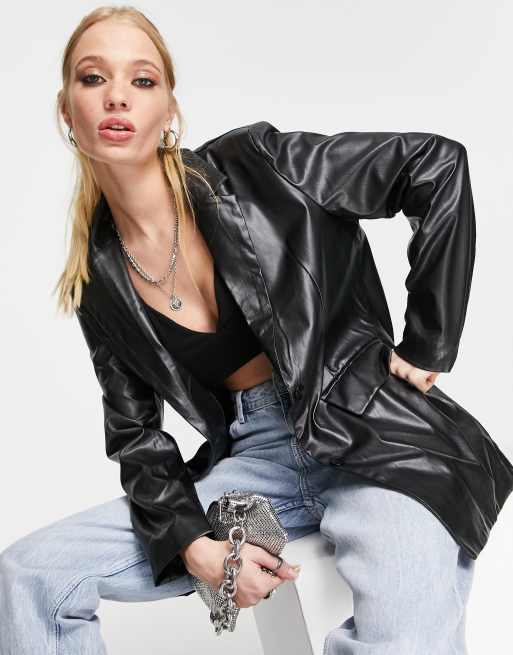 Missy Empire - Blazer oversize imitation cuir - Noir