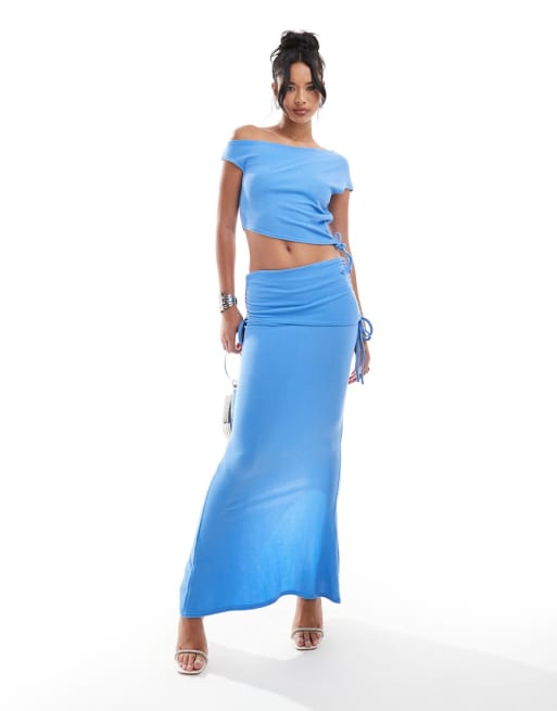 Missy Empire - Ensemble avec top à épaules dénudées et jupe longue avec liens - Bleu
