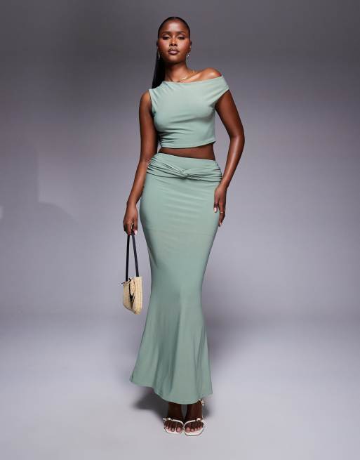 Missy Empire - Ensemble Top asymétrique sculptant et jupe longue torsadée devant - Sauge